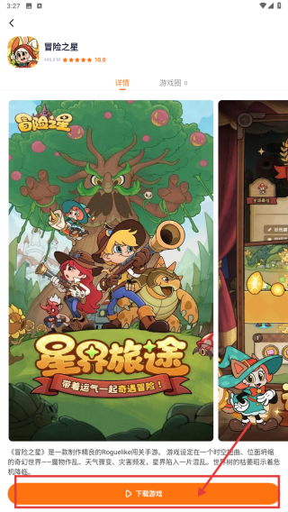 3、进入详情页后,点击橙色下载游戏按钮,开始下载冒险之星,等待安装体验。