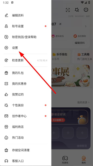 2、在展开的功能列表中,找到设置选项并点击,进入设置相关功能界面。