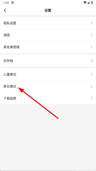 3、在设置界面中,选择家长模式选项,进入对应页面准备开启该模式。