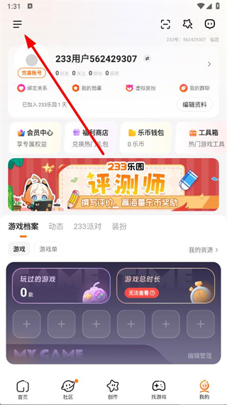 1、进入应用后,在个人页面点击界面左上角的菜单按钮,展开功能列表以查找后续操作入口。