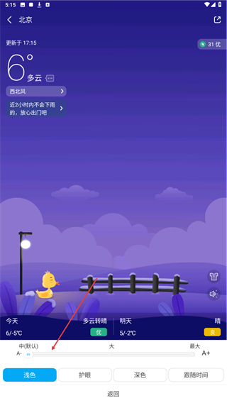 3、浏览气压、风力、湿度等详细数据,了解明日天气。