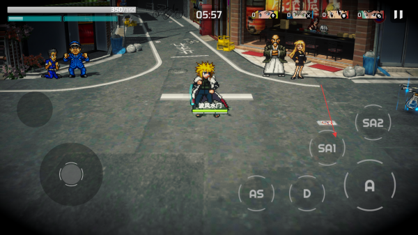 1、进入游戏后,通过左侧虚拟摇杆操控角色在街道场景移动,留意屏幕上方时间,做好战斗准备。