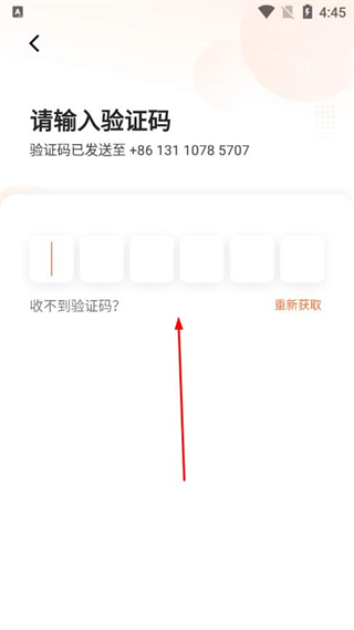 3、在验证码页面,输入收到的短信验证码,完成账号登录。