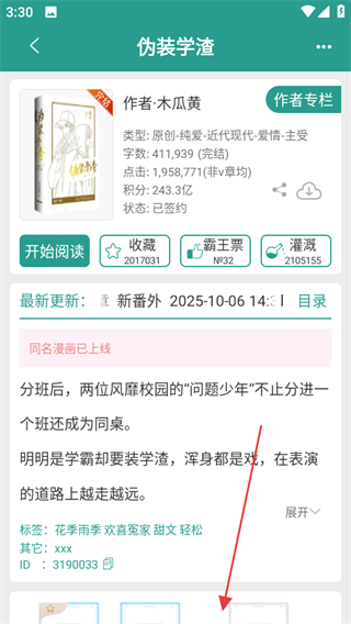 3、在伪装学渣详情页,可查看书籍信息,下滑进入评论区。