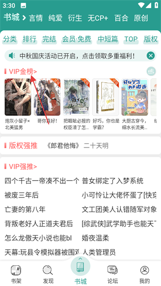 1、进入晋江小说阅读,点击VIP金榜,进入VIP金榜页面。