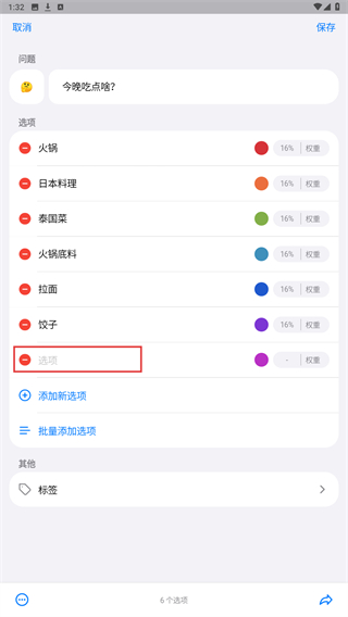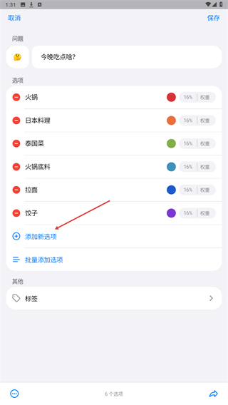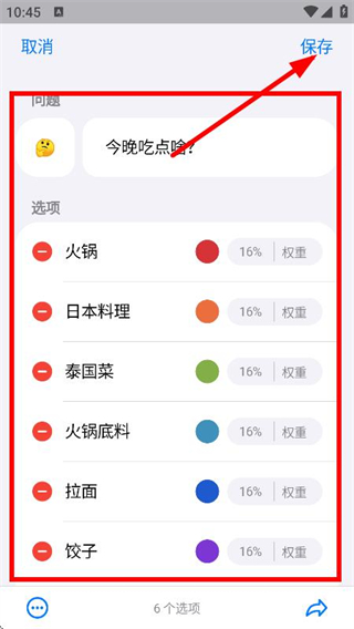 2、在编辑页面,设置问题和选项,点击保存,保存设置。