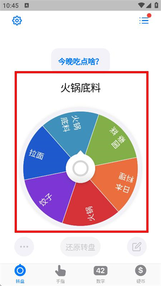 3、保存后,可在转盘页面看到设置好的转盘,转动转盘可进行选择。