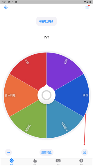 1、在转盘页面,点击右下角编辑图标,进入编辑页面。