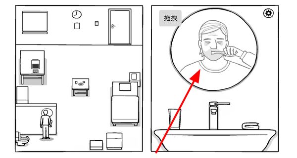 1、操控角色进行洗漱等日常操作,通过拖拽等方式完成,推进每日流程,解锁新的解密环节。