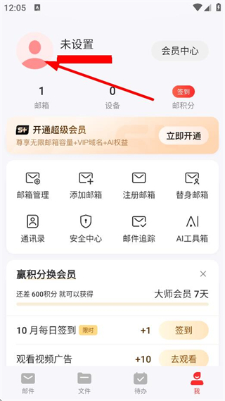2、在个人中心页面,点击头像区域,进入我的大师号页面。