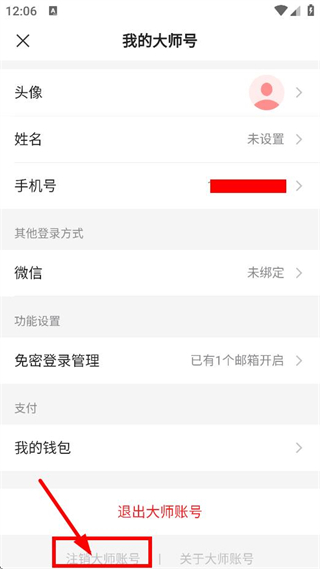 3、在我的大师号页面,点击注销大师账号,进入用户须知页面。