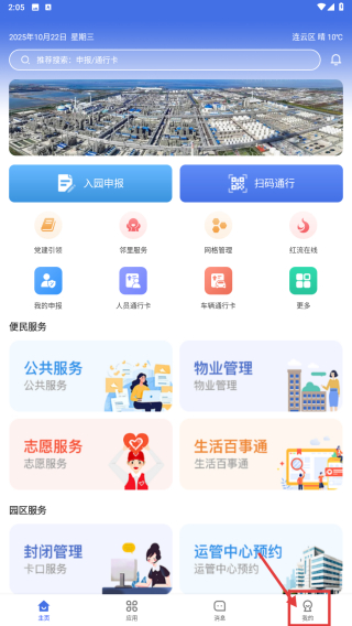 1、打开石化园区服务应用,点击底部我的选项,进入个人中心页面。