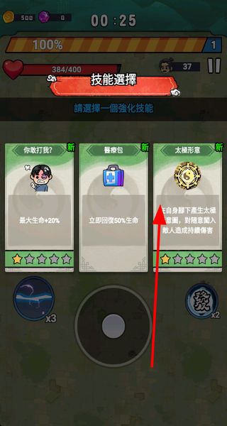 2、战斗过程中会出现技能选择界面,精心挑选合适的强化技能,大幅提升自身战力,更高效地消灭大量敌人。