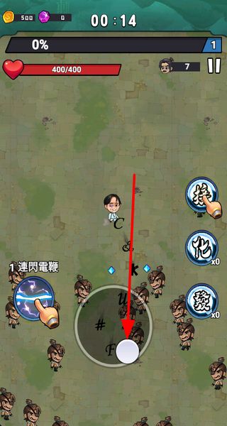 3、通过虚拟摇杆灵活控制角色移动,在密集敌人中躲避攻击,同时寻找最佳有利位置发动强力攻击。