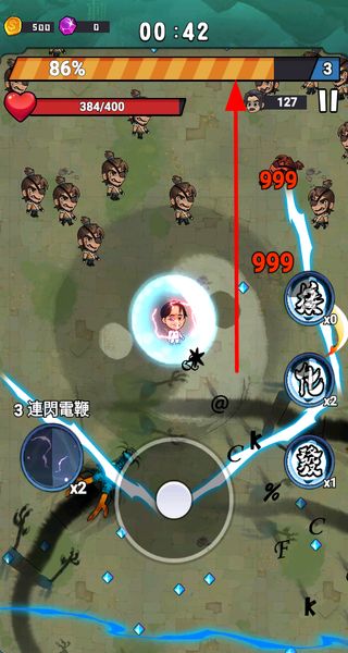 1、在充满敌人的场景中使用技能攻击敌人,消灭敌人可快速积累进度,显著提升关卡完成度,获取丰厚奖励。