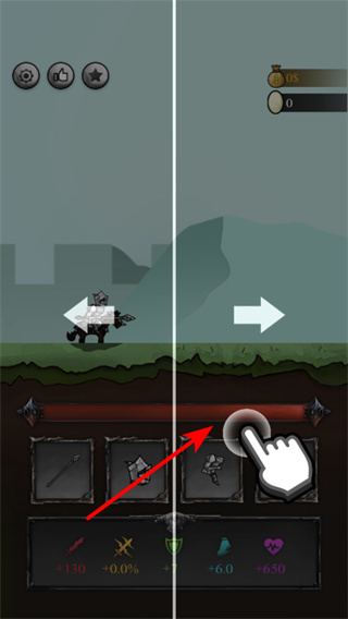 1、操控骑士时,利用左右方向箭头移动探索地图,同时留意底部交互区域,点击可触发技能或道具使用,灵活移动完成冒险。