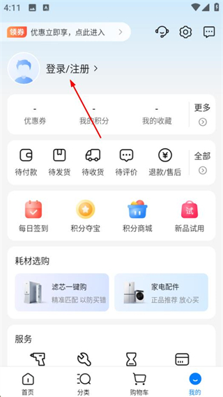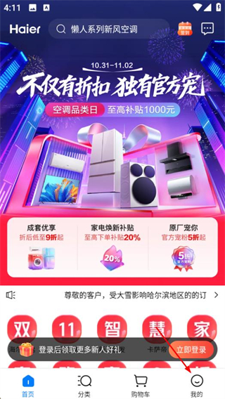 1、打开海尔商城,在首页点击我的,进入个人中心页面。