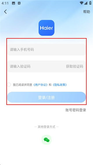 3、在登录页面,输入信息,同意协议后点击登录完成账号登录。