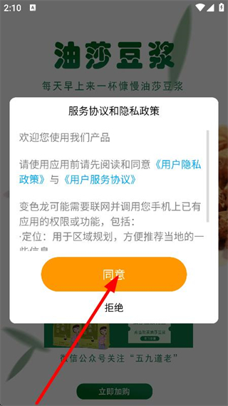 1、在服务协议和隐私政策弹窗中,点击同意,进入手机号登录页面。