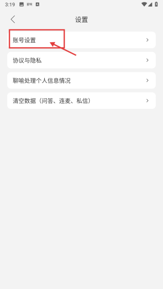 2、在设置页面,点击账号设置选项,进入账号设置页面。