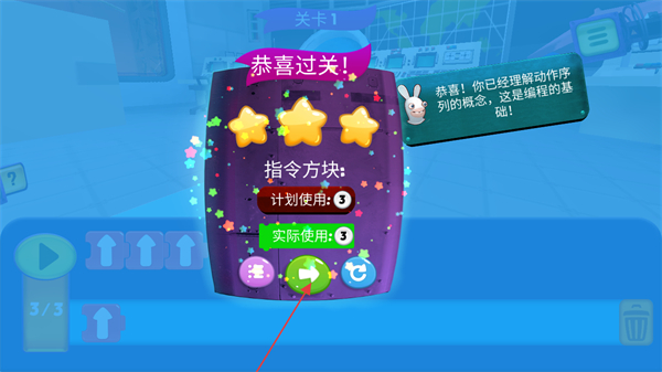 拖拽组合指令后,兔子会即时执行对应任务,成功修复系统或完成目标时能获得直观反馈,让孩子快速收获成就感,增强持续参与的动力。