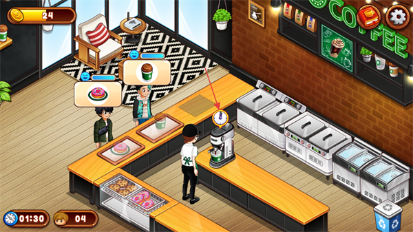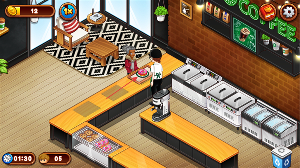 全新美食的解锁与经营进度挂钩,每达成一个小目标就能解锁新内容,让经营过程充满期待感,不断为咖啡店注入新活力,持续吸引玩家在咖啡店内推进经营。