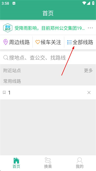 1、在郑州行首页,点击全部线路选项,可进入全部线路页面。