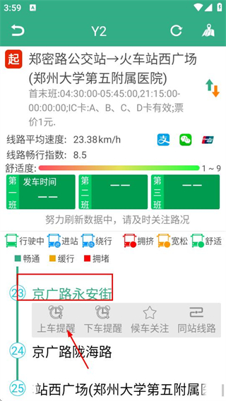 3、在Y2线路详情页,选择京广路永安街站点,可设置上车提醒操作。