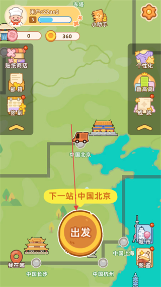 1、打开游戏,进入世界地图,点击下方的出发按钮进入奶茶屋关卡挑战模式。