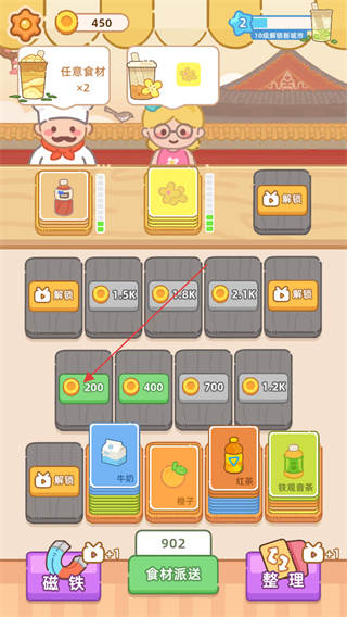 2、通过合成相同卡牌获得食物服务顾客,当遇到没有卡牌可以合成的时候可以花费金币购买新的格子进行存放。