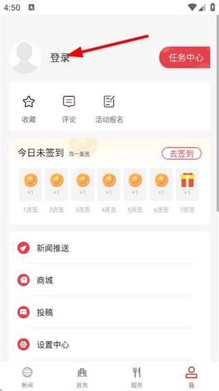 2、在个人页面,点击登录,进入登录方式选择页面。