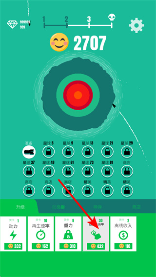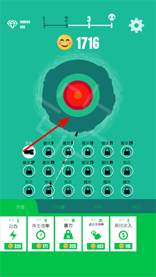 1、在游戏中,点击点击速率升级按钮,提升点击操作的效率,这是加快资源积累和分数增长的关键操作,推进游戏。
