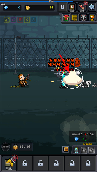 培养幸存者内置功能菜单是一款僵尸题材的放置类动作射击作品,也可称为提高幸存者,带来极具挑战与趣味的游玩体验,扮演幸存者通过点击屏幕射击,对抗源源不断的丧尸与外星生物,展开热血防守之战,随着进度推进关卡难度递增,需收集敌人掉落资源强化角色与武器。
