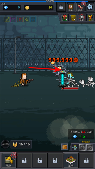 3、在战斗中持续点击屏幕射击,利用升级后的僵尸和自身技能,高效消灭敌人以积累金币和经验,推进关卡进度。