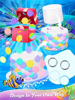 拥有大量美人鱼相关装饰配件,如贝壳插件、鱼尾纹样、海洋色系糖霜等,可自由搭配打造梦幻海洋风蛋糕,让每款作品都充满童话感,契合主题特色。