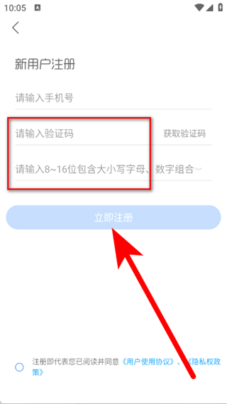 4、输入验证码,设置密码后,点击立即注册按钮,完成账号注册流程。