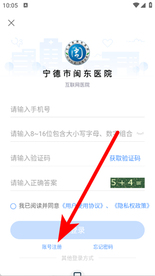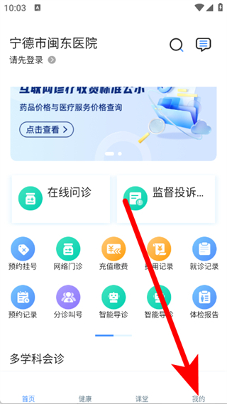 1、打开闽东医院,点击底部导航栏我的,进入登录页面。