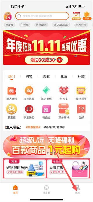 2、在陀螺多多的首页,点击底部我的,进入个人页面。