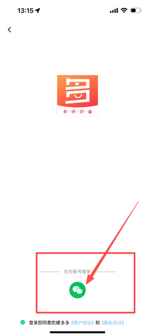 4、在登录方式选择页面,点击微信图标,按提示完成账号登录操作。