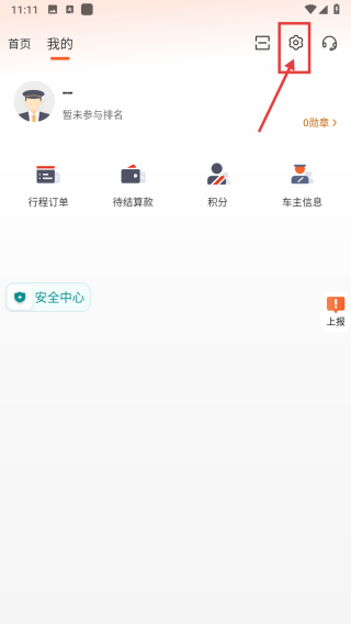 1、打开出行服务类APP首页,点击顶部我的选项,进入个人中心页面。