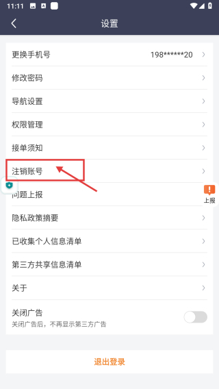 3、在设置页面,点击注销账号选项,进入永久注销账号页面。