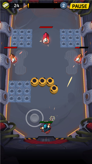 4、移动角色躲避敌人的飞弹,同时攻击敌人,向传送门推进以完成关卡。