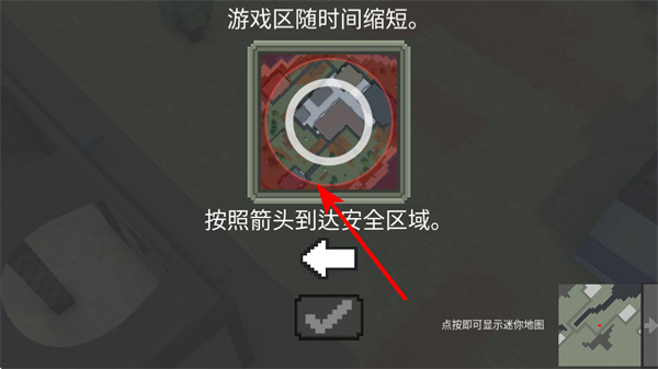 2、关注游戏区随时间缩短的提示,按照箭头前往安全区域,移动是保障角色生存的核心策略,进入避免被淘汰。