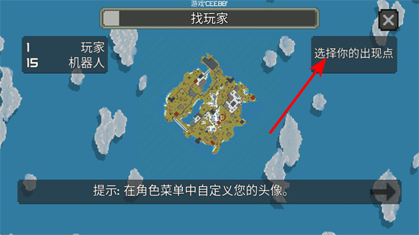 1、在游戏中,选择你的出现点,这是进入战斗地图的关键操作,选择合适的出生点可避开早期激烈战斗。