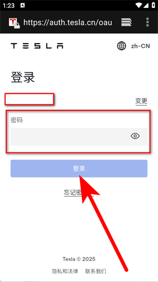 2、在登录选择页面,点击登录,进入特斯拉登录页面。