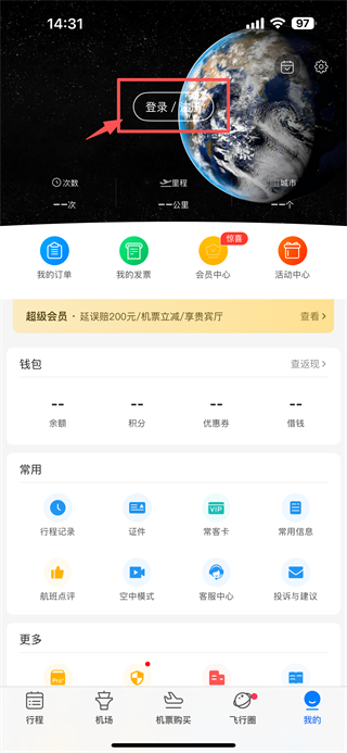2、在个人中心,点击登录/注册区域,进入登录界面。