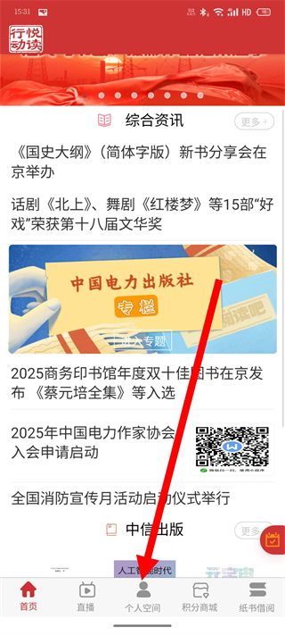 1、打开书香国网,点击底部导航栏个人空间,进入个人页面。