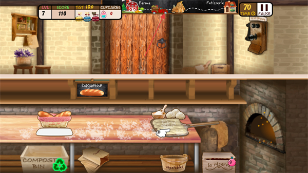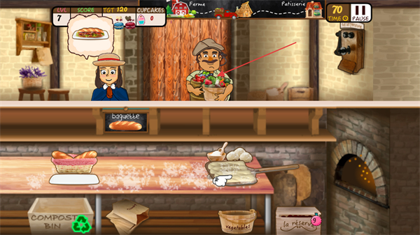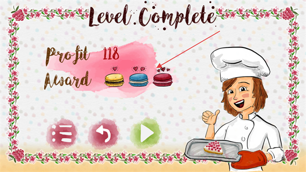 4、通过制作蔬菜面包赚取金币获得评分,达到一定的评分获得三颗心的评价。