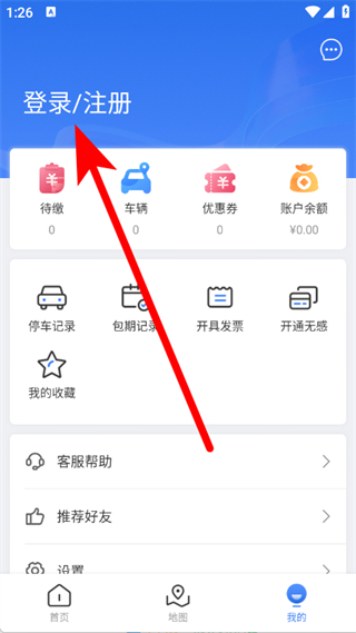 2、在我的页面,点击登录注册,进入注册登录页面。