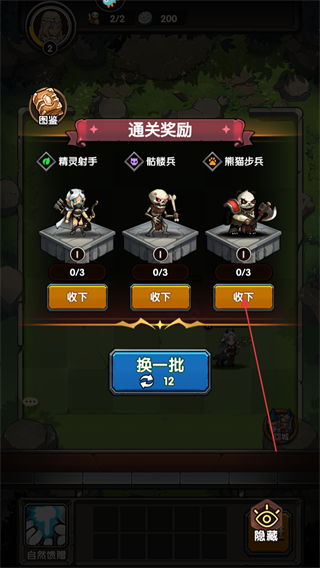 1、每通过一个关卡能获得一次通关奖励可以选择一个角色进行获取。